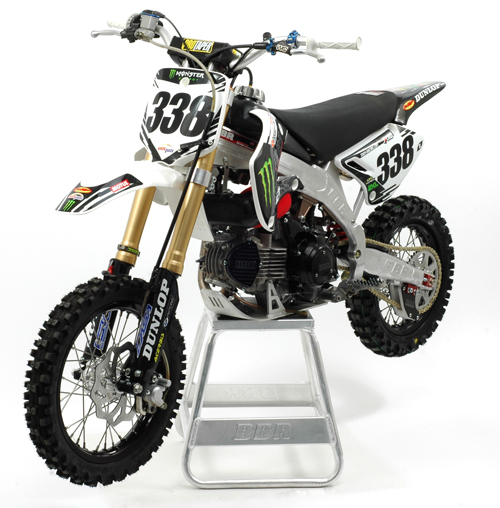 Arena, Friday, May 1st. BBR, the industry leader in adult four-stroke playbike performance technology, and Lawrence got together when Lawrence showed some interest in possibly checking out the MMSX on Friday prior to the Monster Energy Supercross finals in Vegas the following day. “I thought it’d be something fun to check out,” said Lawrence of the MMSX. “BBR was down with setting up a bike for me and I thought ‘Yeah, let’s go for it.’” With a free ride to the finals if he so chooses (MMSX promoters’ ruling regarding SX/MX champs racing MMSX), Lawrence can step in and, with the same amount of practice time all the other pros get on Thursday prior to the race, see if he can top the likes of defending champ – BBR’s Derek Costella. Or, if Lawrence decides to go the qualifier route, he’ll get some more saddle time on the custom #338 BBR MM12E bike. “Yeah, I haven’t really thought about that yet,” said Lawrence of his MMSX strategy. “I’ve got a couple mini bikes, but I’m sure they’re not nearly as fast as what BBR’s putting together for me. I’m pumped to ride it, really. Friday at the Orleans is gonna be a blast.” BBR engineers pulled no punches on creating a MONSTER of 160cc mini for Lawrence. Check out this list of some of the goodies that went into crafting this custom bike for the defending WSX Champ. -BBR V3 Polished Aluminum Perimeter Frame -BBR Billet SuperComp Adjustable Swingarm -BBR HD SuperShock -BBR Disc Brakes (front and rear) -Galfer Wave Rotors -BBR Race Team Billet Hubs (front and rear) -Marzocchi Shiver 35mm Forks w/BBR Race Team Re-Valve and Springs -Kitaco 160cc Big Bore w/Stroker Crank -Kitaco SE-4V Race Head w/BBR Race Team Mods -BBR Forged Output Shaft w/HD 1st Gear -BBR 4-Speed -Takegawa Special Clutch w/Cable Cover -BBR Lightened Flywheel -Keihin 28mm D-Slide Carb w/BBR Intake -BBR U-Flow Air Filter -BBR D2 Performance Exhaust System -BBR Forged Kick Starter -One Industries Custom “J-Law Replica” Graphics Package “While Jason’s no stranger to high level competition, we wanted to make sure he’s outfitted with the best, most competitive bike we could possibly create to line up for the MiniMotoSX,” said BBR’s Duane Brown. “Everything the Monster Energy/BBR Race Team and BBR Factory Team guys have access to, we’ve engineered into the #338 bike for Jason. And I think I speak for everyone not only here at BBR, but in the entire MX industry, that we can’t wait to see how Jason does against the world’s top mini bike racers in Vegas.” Pitting under the BBR banner at Vegas along with Lawrence and Costella will be Ryan Abrigo, Derek Rose, Jason Anderson (Monster/BBR), Tim Weigand and Victor Sheldon (BBR Factory) along with the all the other BBR factory team riders. Depending on which Brown Brother you talk to (Duane, Chris or Brent), BBR was founded sometime between 1981 when Brent Brown was into drag racing and 1982 when they changed the name of their bike shop to “BBR” and began sponsoring local BMX racers. Over the years BBR Motorsports has grown into the industry’s premier adult four-stroke playbike performance technology company. Engineering from the minds of racers, coupled with the latest in CAD and CNC technology, allows BBR to house one of the largest selections of innovative four-stroke MX performance parts in the world. Names from McGrath and Stanton to Costella and Abrigo dominate the nation’s premier adult mini cycle races riding BBR product – so can you. Check them out on the web at www.bbrmotorsports.com |